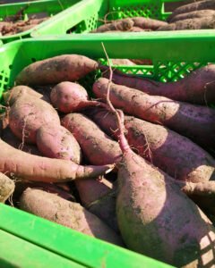 The freshly harvested sweet potatoes will now be slowly aged to draw out their sweetness, then carefully processed.